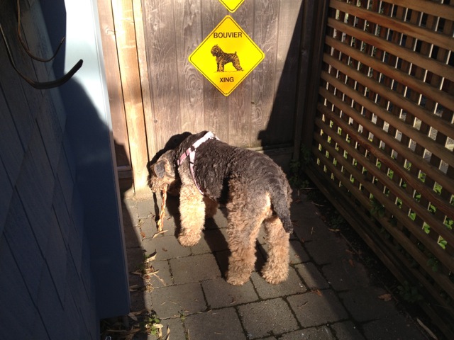Open my yard gate please!! (A Bouvier lived with us for a while, hence the sign)